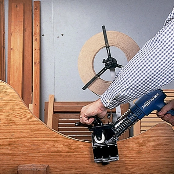 Para el aplacado de cantos preencolados de P.V.C., poliester, melamina y chapa de madera. Permite el aplacado de piezas circulares o con formas. Su especial diseño de mordazas regulables permite realizar el trabajo con una gran precisión y estabilidad. Práctico sistema de corte del canto incorporado. Posibilidad de realizar el encolado al ras o con sobrante por cualquiera de las dos caras. Tiempo de preparación: menos de un minuto.